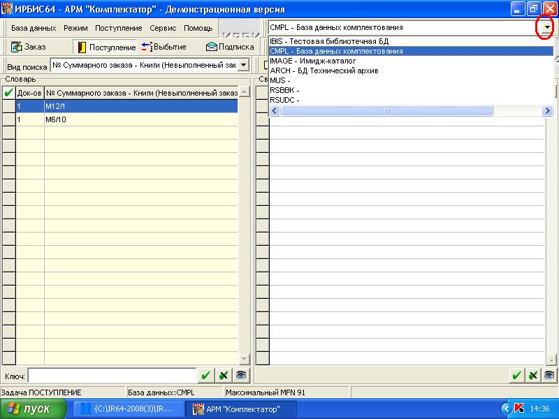 Если работа будет проводиться в БД CMPL, то базу не меняем, если же будем вводить информацию в БД Электронного каталога, то меняем базу