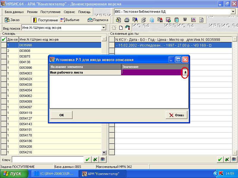 В результате появляется таблица, в которой мы должны выбрать тот Рабочий лист, который соответствует виду вводимого документа