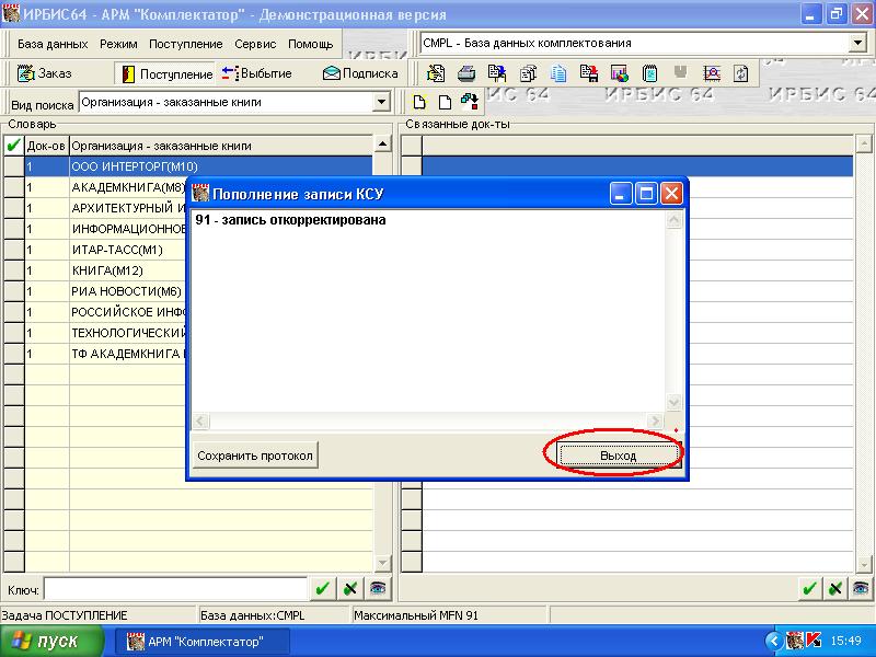 В результате появляется сообщение о корректировке записи КСУ. Нажимаем