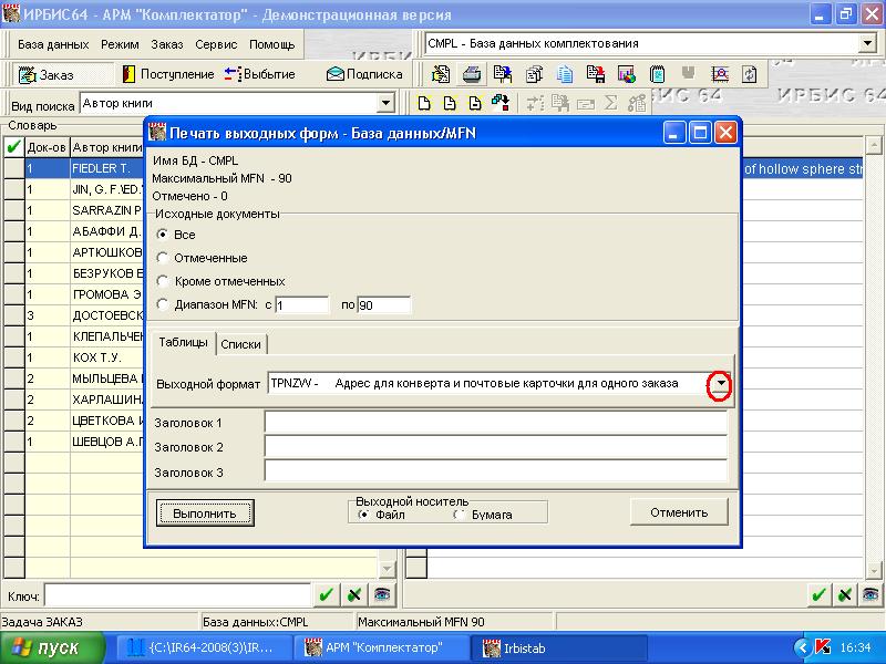 На экран подается таблица и выбирая выходной формат можно получить соответствующую выходную форму.