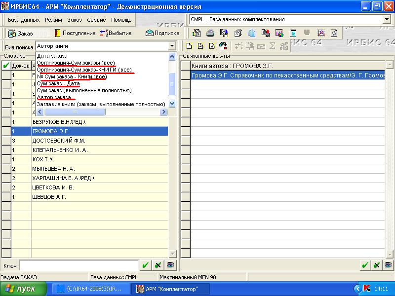 Можно посмотреть сформированные словари, изменив вид поиска. Например, выбираем- Организация -Сум.заказы(все)