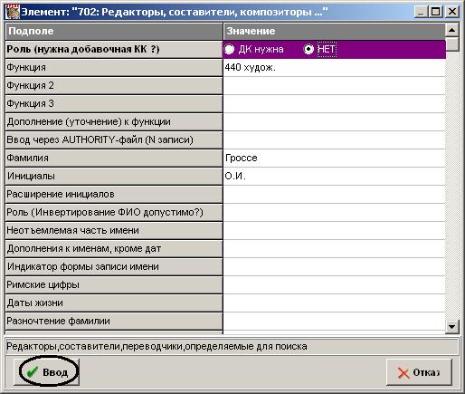 Код функции введен. Можно поставить признак – требование готовить Добавочную КК на Автора послесловия (по умолчанию переключатель стоит в положении «НЕТ»). Для возврата в РЛ полей - «Ввод»