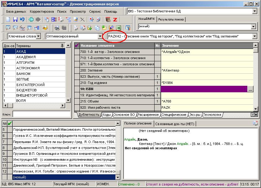- В поле 10 вводим ISBN (в данном примере отсутствует)