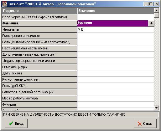 Если ни в словаре, ни в Авторитетном файле авторов фамилия не найдена, вводим