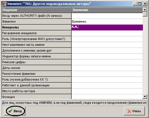 Вводим 3-го автора . Для возврата в РЛ полей -