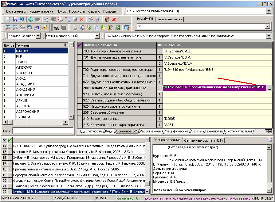 При сохранении записи сформируются Сведения об ответственности (поле 200^f). Чтобы откорректировать текст, открываем РЛ подполей
