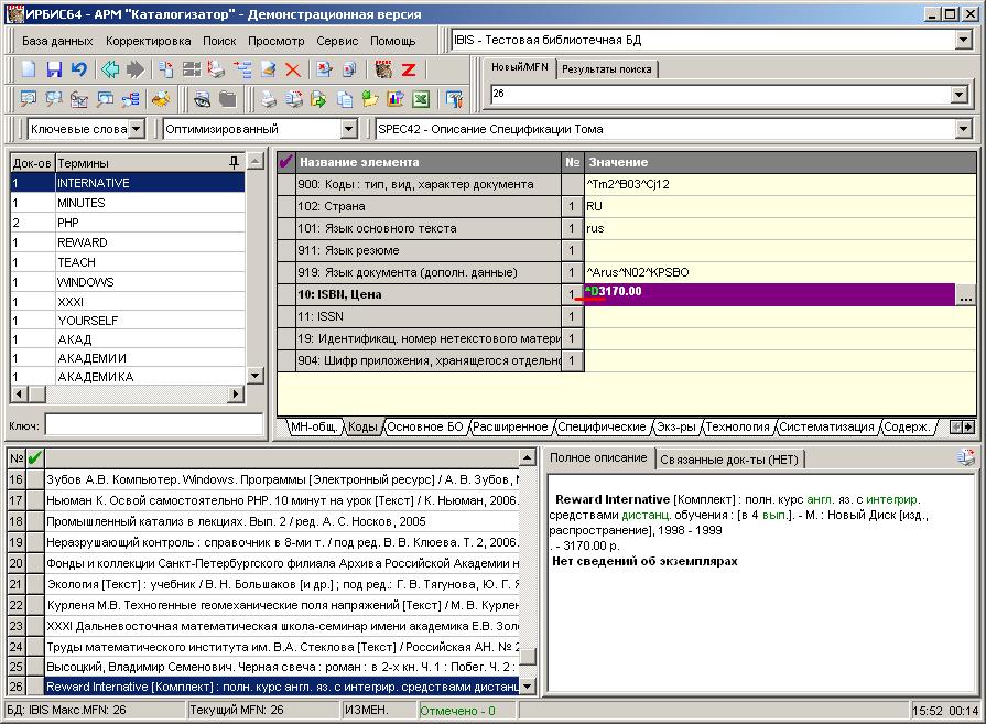 Цена в поле 10 введена с разделителем подполя. В окне просмотра дополняется БО. Переходим на закладку "Основное БО"