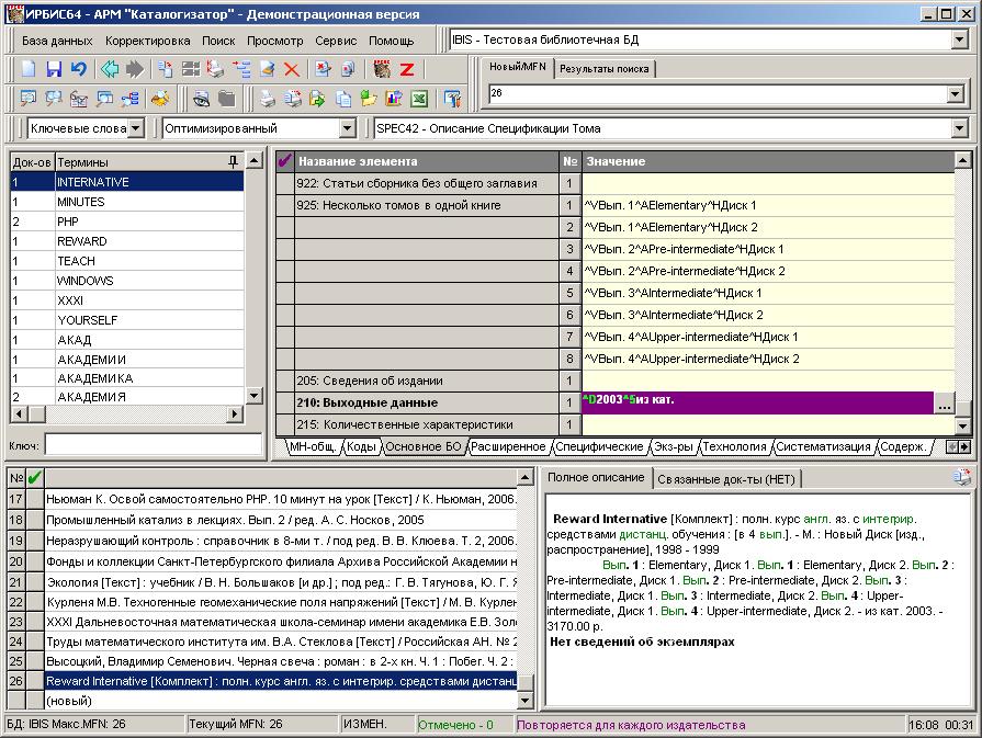 В поле 210 данные введены с разделителями подполей. В окне просмотра видим дополненное БО. Переходим к вводу поля 215 "Количественные характеристики"