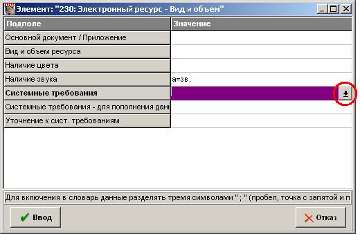 в основное описание