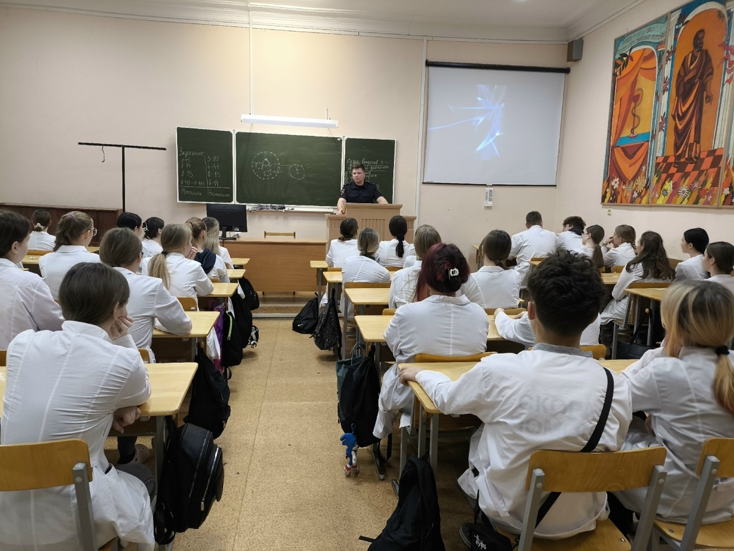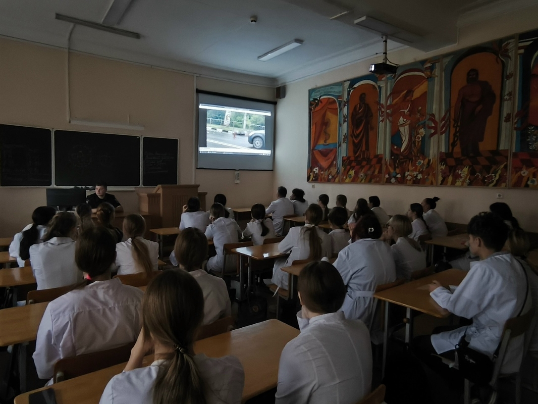 14 ноября в колледже состоялась встреча студентов первого и второго курса специальностей "Лечебное дело" и "Лабораторная диагностика" с инспектором ОП БДД отдела Госавтоинспекции УМВД России по г. Кирову, лейтенантом полиции Кудрявцевым Ильей Сергеевичем.